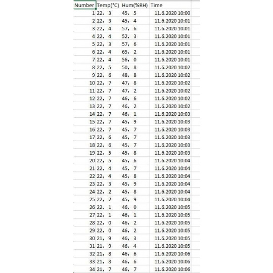 pamäť pre 20 010 hodnôt teploty a vlhkosti LCD displej o rozmeroch 22 x 20 mm pre zobrazenie aktuálnych, minimálnych a maximálnych nameraných hodnôt možnosť nastavenia načítania dát od 2 sekúnd do 24 hodín (2 až 30 s, ďalej 1, 5, 15, 30 min, ďalej 1, 5,12, 24 hodín) pripojenie k počítaču cez USB port nastaviteľný alarm horná a dolná hranica pre teplotu a relatívnu vlhkosť program TempRH Datalogger pre zobrazenie nameraných hodnôt pre OS Windows až do verzie Windows 10 (32 bit a 64 bit) zobrazenie nameraných dát v reálnom čase v priloženom programe vrátane grafu možnosť odloženého začatia merania dáta vo forme správy v pdf formáte a tabuľky vo formáte *.csv a vo formáte *.imtr (Meter Files - možné otvoriť priloženým programom) súčasťou balenia je datalogger, pútko, batéria, CD s programom a návod