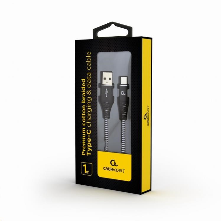 GEMBIRD CABLEXPERT USB 2.0 Kábel AM na typ C (AM/CM), 1 m, opletený, čiernobiely, blister, PREMIUM KVALITA