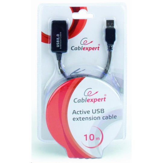GEMBIRD USB 2.0 aktívny predlžovací kábel, 10 m, čierny