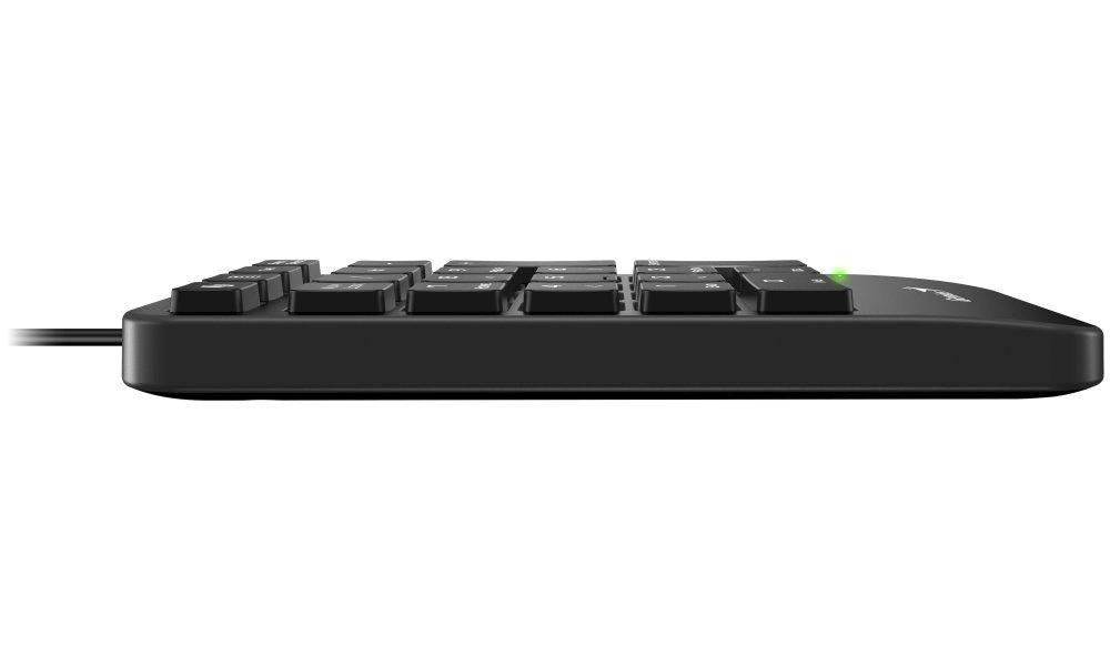 Drôtová numerická klávesnica v tenkom prevedení s vylepšenou štruktúrou kláves, ktorá znižuje hluk. Ergonomický dizajn s opierkou dlane poskytuje pohodlné používanie. K dispozícii sú aj klávesy ako Copilot, tabulátor, backspace a kalkulačka pre rýchlejšiu a efektívnejšiu prácu. Na použitie ju stačí pripojiť k portu USB-C.