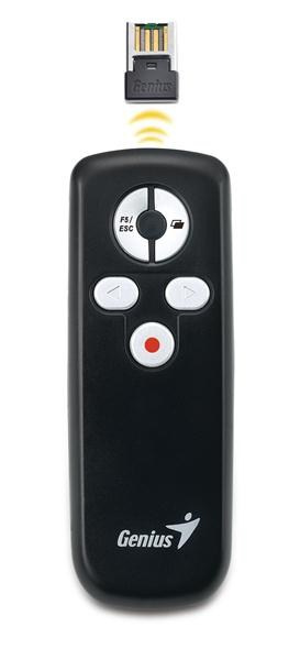 Úplne nový Media Pointer 100 od spoločnosti Genius je dokonalým nástrojom na používanie pri prezentáciách. Pokročilá bezdrôtová technológia 2,4 GHz poskytuje prevádzkový dosah až 10 metrov bez rušenia. Je to užitočný nástroj na stretnutia, prejavy alebo školenia na cestách.