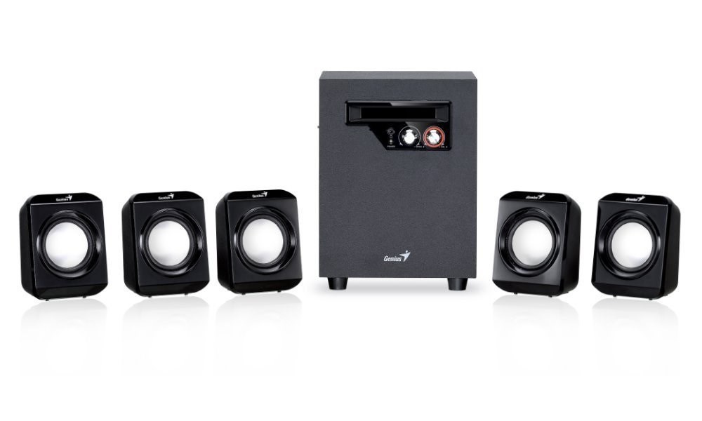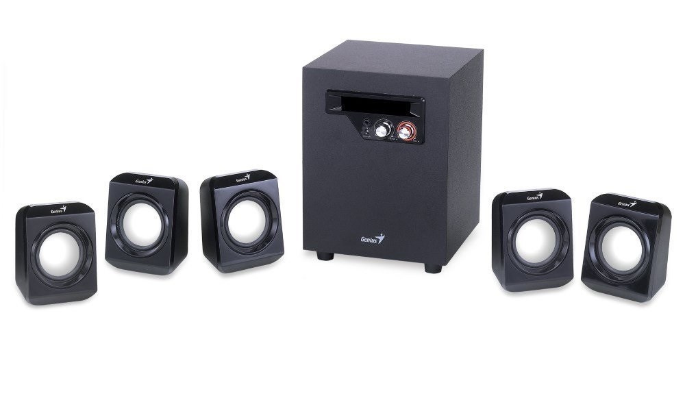 Elegantný systém reproduktorov v konfigurácii 5reproduktorov.1 ponúka celkový výkon 26 W. Zostava pozostáva z vysokokvalitného subwoofera so 4" meničom, ktorý poskytuje výkon 14,5 W RMS a dodáva verné a plné basové tóny. Subwoofer dopĺňa päť satelitov, každý s výkonom 2,3 W RMS. Ovládanie hlasitosti a basov sa nachádza na prednej strane subwoofera. Balenie obsahuje napájací adaptér 100-240 V.