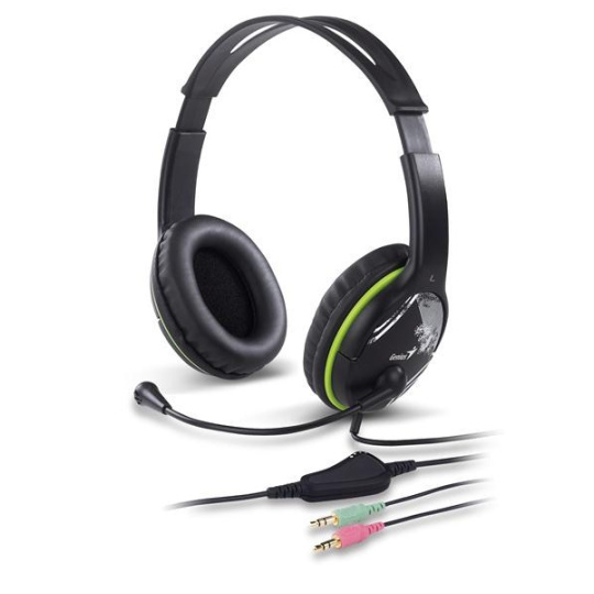 GENIUS sluchátka s mikrofonem HS-400A, černozelená, + redukce na Single Jack