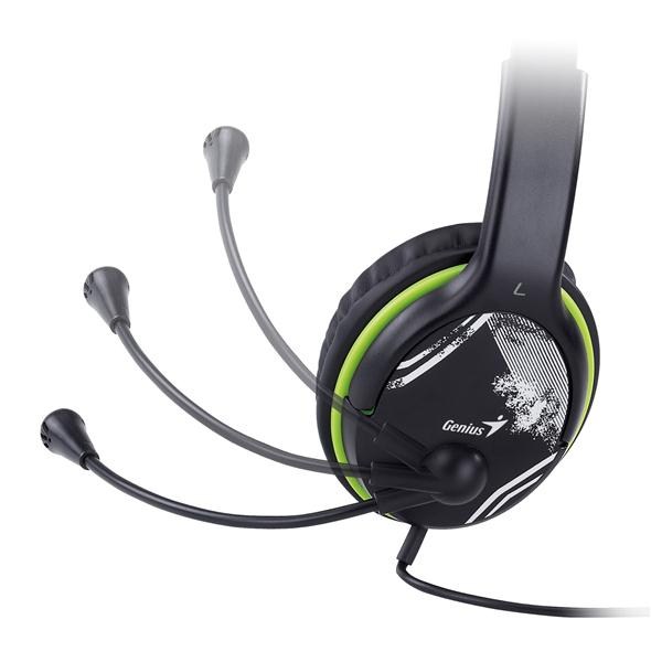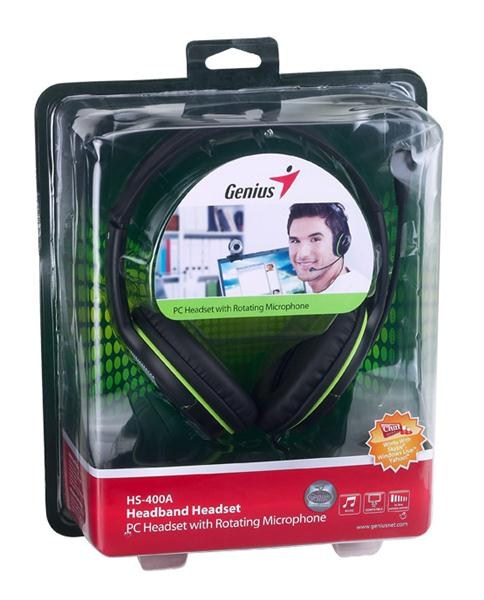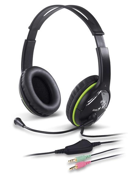 GENIUS sluchátka s mikrofonem HS-400A, černozelená, + redukce na Single Jack
