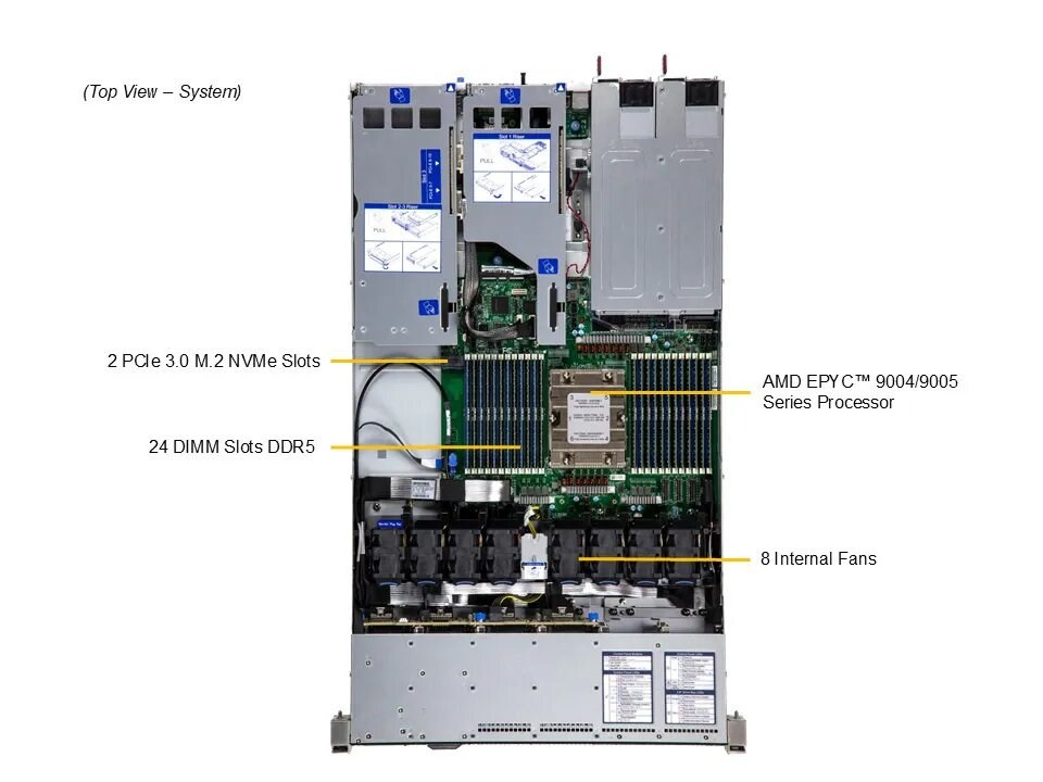 | Procesory | Až 2x AMD EPYC™ 9004/9005* Series procesory (*Podpora AMD EPYC™ 9005 vyžaduje revíziu dosky 2.x) |