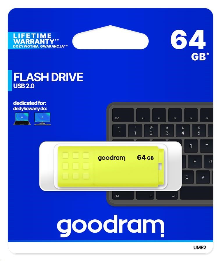 GOODRAM Flash Disk 64GB UME2, USB 2.0, žltá