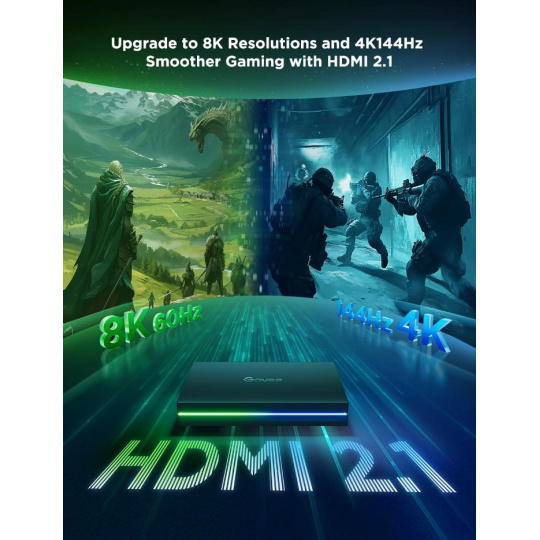 AI Sync Box Kit 2 je navrhnutý pre bezproblémovú inštaláciu. Stačí pripojiť cez HDMI a nechať inteligentný AI procesor pracovať – žiadne oneskorenie, žiadne manuálne nastavenie. Vďaka technológii Govee DreamView a inovatívnemu použitiu špeciálnych čipov, podporujúcich učenie AI, tento box analyzuje každý snímok a s ohromujúcou presnosťou premieta farby a vzory, ktoré rozširujú vizuálny zážitok do celej miestnosti. Pre ešte väčší efekt možno AI Sync Box synchronizovať s ďalšími chytrými svetlami Govee a vytvoriť plne pohlcujúcu atmosféru s viacerými zariadeniami. Sync Box je navyše kompatibilný s HDMI 2.1, takže podporuje prostupnosť moderných technológií redukcie lag a trhania obrazu.