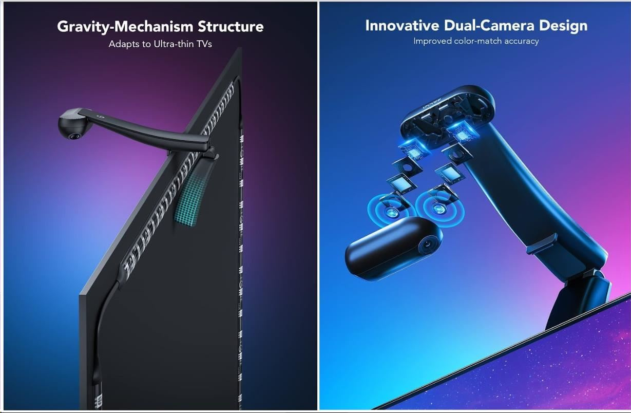 Inovatívny dizajn kamery so dvoma šošovkami zachytáva obsah presnejšie a vďaka tomu synchronizuje farby z obrazovky s väčšou presnosťou. Montážna konštrukcia umožňuje jednoduchšiu inštaláciu na hornú časť televíznej obrazovky, vrátane ultra tenkých TV.