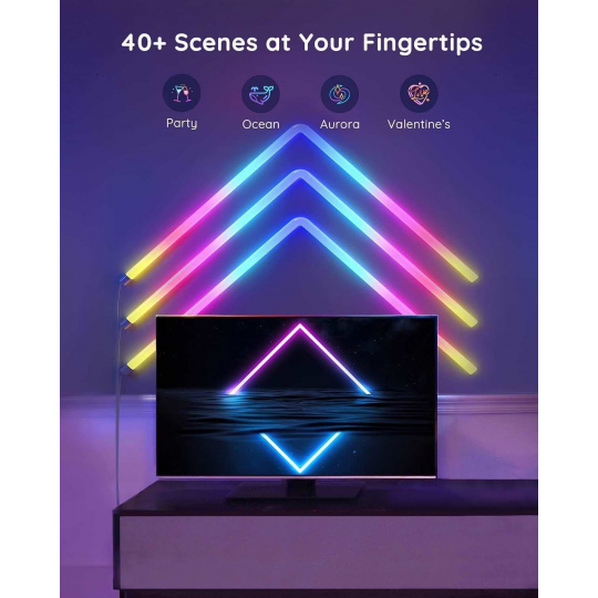 Govee Glide ponúka viac ako 40 rôznych režimov pre dokonalé vyladenie svetelnej atmosféry. Technológia Govee RGBIC dokáže zobraziť až 57 farieb naraz z celkového rozsahu 16 miliónov farieb s intenzitou 1-100%. Môže sa tiež pochváliť životnosťou až 50 000 hodín.