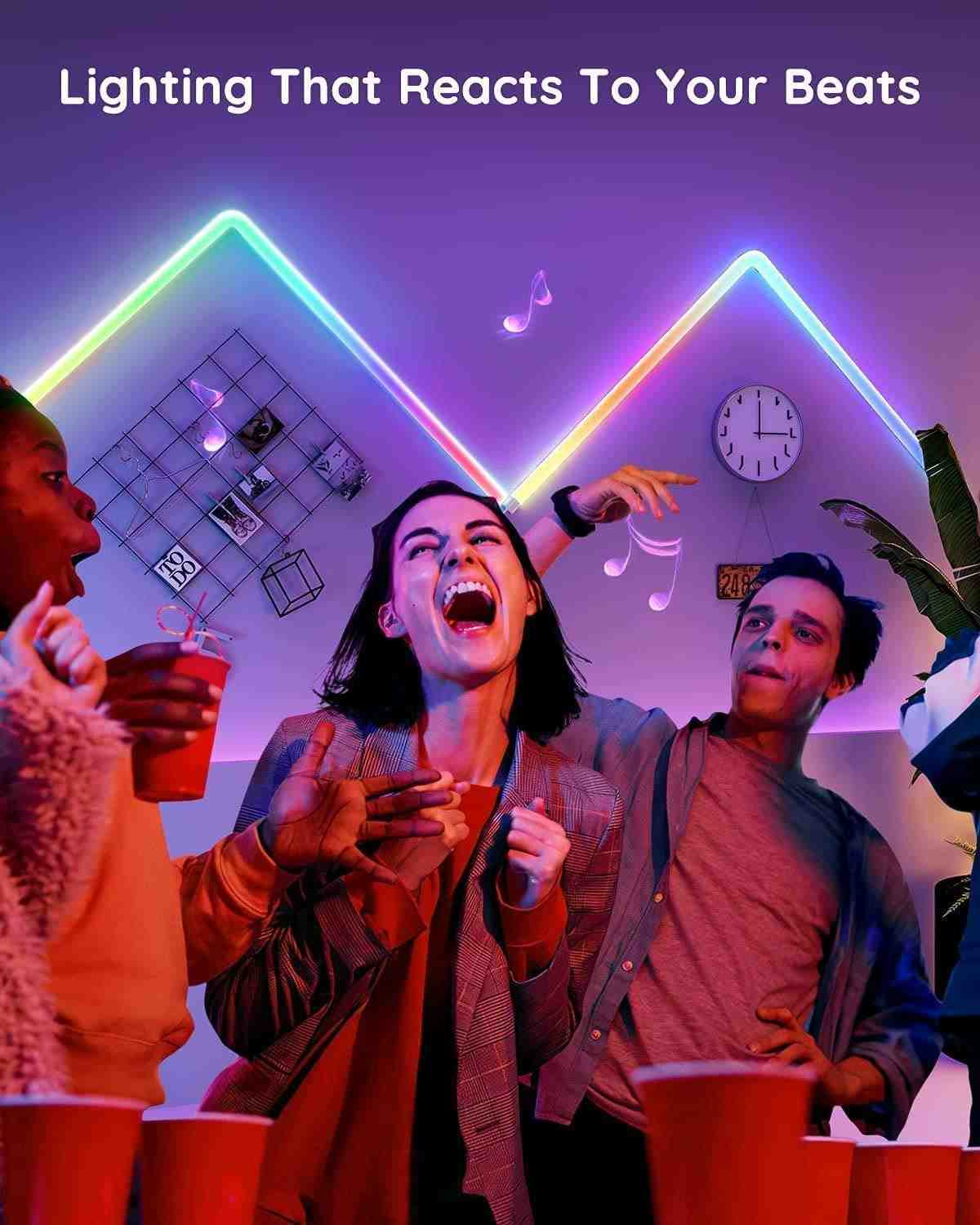 Svetelné lišty sa plynule synchronizujú s vašou hudbou alebo atmosférickými zvukmi pri sledovaní filmov, hraní hier a počúvaní hudby. Na výber je šesť režimov na nastavenie rytmického zvuku - Energy, Rhythm, Bounce, Hopping, Strike a Vibrate.