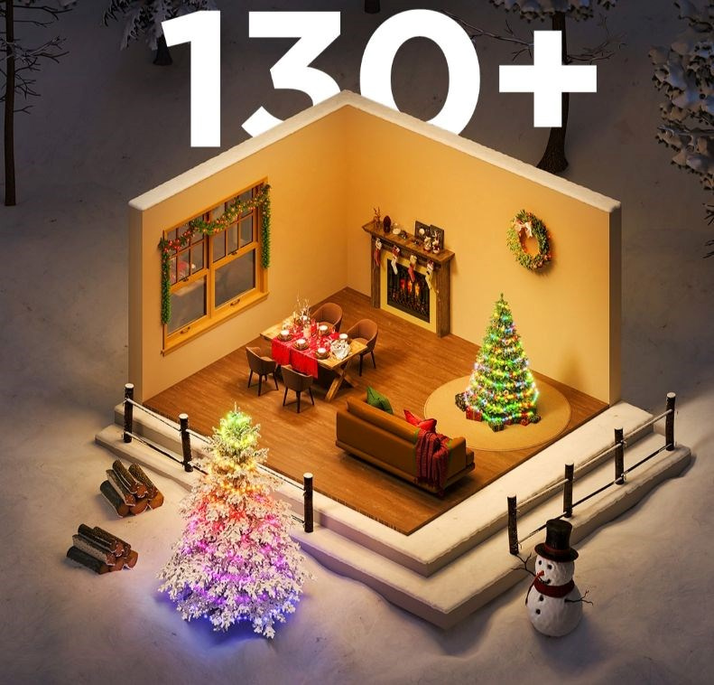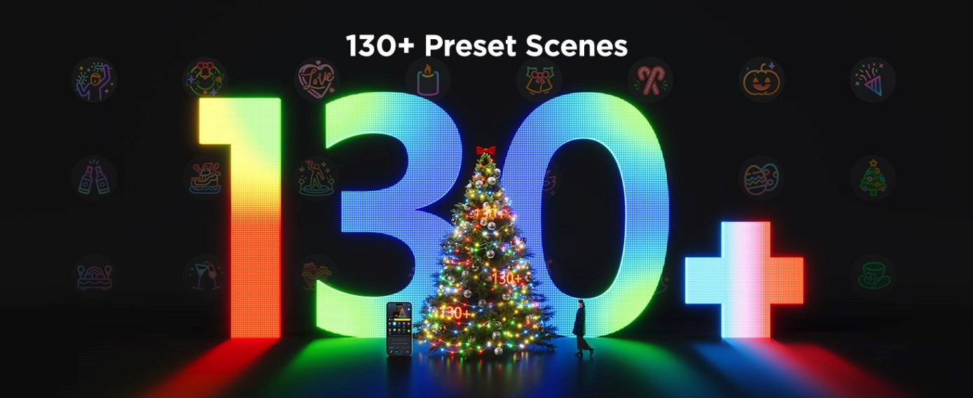 Govee Vianočný svetelný reťazec ponúka viac než 130 prednastavených svetelných scén, ktoré sú perfektné pre vianočné obdobie aj ďalšie festivaly počas roka. Tieto scénické režimy zahŕňajú pestrú škálu efektov, od tradičných a útulných atmosfér po živé a energické farebné kombinácie, ktoré dokážu oživiť akúkoľvek oslavu. Či už oslavujete Vianoce, Nový rok, Halloween alebo iné špeciálne príležitosti, vždy nájdete tú pravú scénu, ktorá dokonale ladí s vašou náladou a témou udalosti. S týmito bohatými možnosťami prispôsobenia sa váš priestor stáva centrom zábavy a radosti pre rodinu a priateľov.