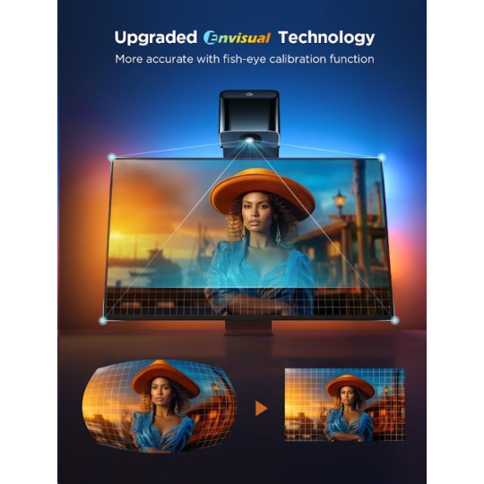 Govee Backlight 3 Lite spoléhá na presnú reprodukciu farieb na obrazovke pomocou kamery. Tá bola novovala o korekciu zkreslenia, takže podsvietenie presne nadväzuje na farby na obrazovke a tým vytvára imerzívny vizuálny zážitok. Kamera sa pre kompatibilitu so soundbarmi umiestňuje nad televíziu a počíta aj s ultra tenkými modelmi obrazoviek.