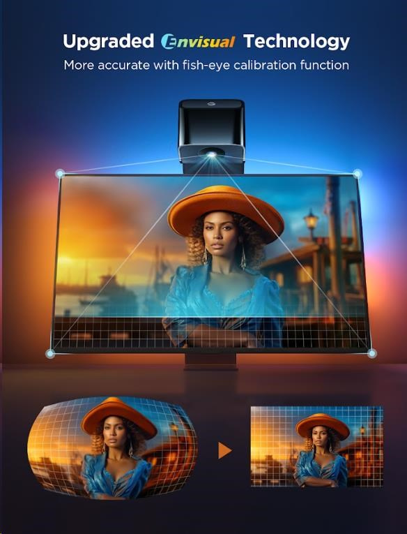 Govee Backlight 3 Lite spoléhá na presnú reprodukciu farieb na obrazovke pomocou kamery. Tá bola novovala o korekciu zkreslenia, takže podsvietenie presne nadväzuje na farby na obrazovke a tým vytvára imerzívny vizuálny zážitok. Kamera sa pre kompatibilitu so soundbarmi umiestňuje nad televíziu a počíta aj s ultra tenkými modelmi obrazoviek.
