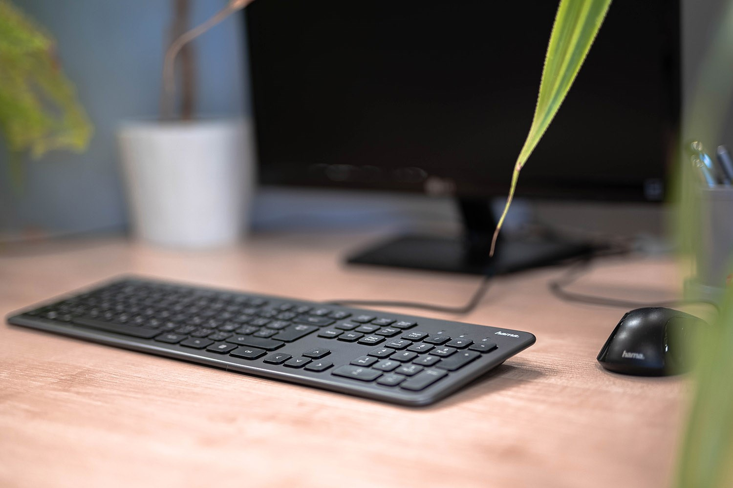 - elegantná tenká klávesnica pre zadávanie údajov na PC alebo notebooku