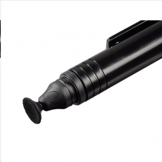 - pre vysoko efektívne a šetrné čistenie všetkých optických plôch, špeciálne vyvinuté pre objektívy a filtre - dlhá životnosť, pretože ide o suché čistenie, čo znamená, že produkt neobsahuje žiadnu kvapalinu, ktorá by mohla vyschnúť - odstraňuje prach, mastné miesta a iné škvrny - súčasťou je štetec pre prvotné odstránenie väčších nečistôt - tvarované pre pohodlné držanie - klip pre pripevnenie, napr. k saku na košeli/tričku - zahnutá čistiaca plocha zo špeciálneho sametu - priemer čistiacej plochy: 13 mm - dĺžka pera: 12,5 cm - materiál pera: plast - materiál čistiacej plochy: špeciálny samet - farba: čierna Návod na použitie: 1. Pomocou červeného posuvného tlačidla vysuňte štetec. Pomocou štetca odstráňte väčšie častice nečistôt. 2. Sunde ochranný kryt na opačnom konci pera. Pomocou sametovej čistiacej plochy, krátkymi krúživými pohybmi, odstráňte nečistoty z optického povrchu. Po skončení čistenia opäť nasaďte ochranný kryt a raz otočte, aby ste aktivovali čistiace vlákna. 3. Na ťažšie odstrániteľné znečistenie dýchajte na optickú plochu a čistiaci proces opakujte. Upozornenie: Nevhodné na čistenie zrkadiel fotoaparátov. Tento produkt je vhodný iba na čistenie malých optických povrchov.