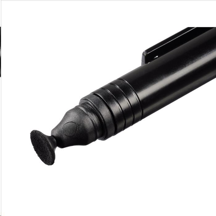 - pre vysoko efektívne a šetrné čistenie všetkých optických plôch, špeciálne vyvinuté pre objektívy a filtre - dlhá životnosť, pretože ide o suché čistenie, čo znamená, že produkt neobsahuje žiadnu kvapalinu, ktorá by mohla vyschnúť - odstraňuje prach, mastné miesta a iné škvrny - súčasťou je štetec pre prvotné odstránenie väčších nečistôt - tvarované pre pohodlné držanie - klip pre pripevnenie, napr. k saku na košeli/tričku - zahnutá čistiaca plocha zo špeciálneho sametu - priemer čistiacej plochy: 13 mm - dĺžka pera: 12,5 cm - materiál pera: plast - materiál čistiacej plochy: špeciálny samet - farba: čierna Návod na použitie: 1. Pomocou červeného posuvného tlačidla vysuňte štetec. Pomocou štetca odstráňte väčšie častice nečistôt. 2. Sunde ochranný kryt na opačnom konci pera. Pomocou sametovej čistiacej plochy, krátkymi krúživými pohybmi, odstráňte nečistoty z optického povrchu. Po skončení čistenia opäť nasaďte ochranný kryt a raz otočte, aby ste aktivovali čistiace vlákna. 3. Na ťažšie odstrániteľné znečistenie dýchajte na optickú plochu a čistiaci proces opakujte. Upozornenie: Nevhodné na čistenie zrkadiel fotoaparátov. Tento produkt je vhodný iba na čistenie malých optických povrchov.