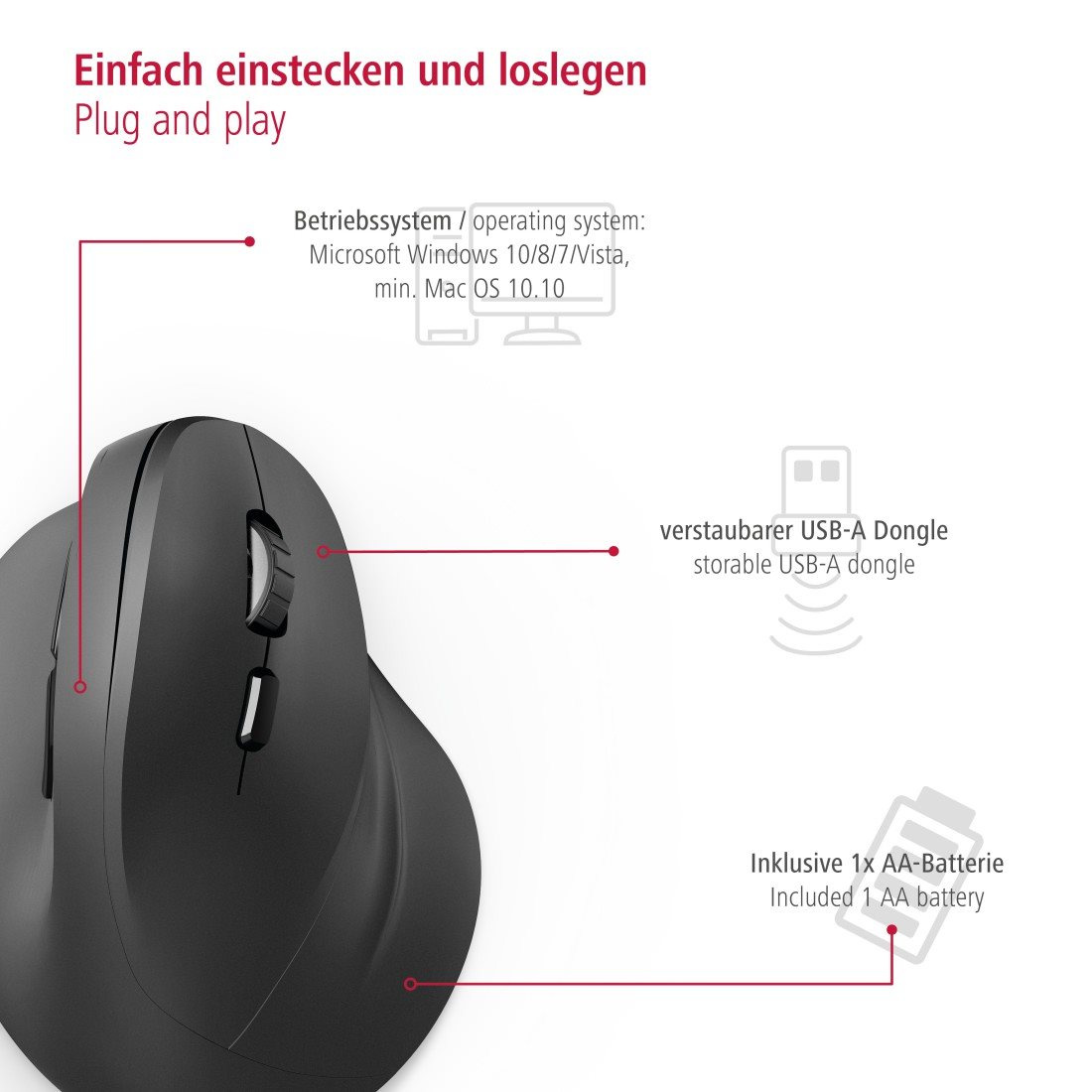 Vertikálna ergonomická bezdrôtová myš Hama EMW-500, 6 tlačidiel, čierna