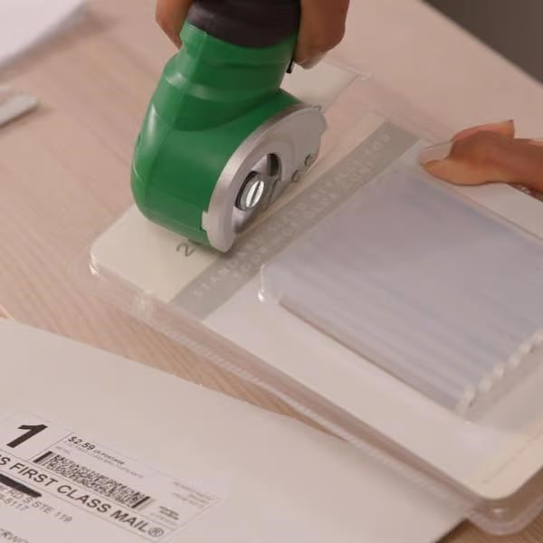 Hammersmith SharpSpin elektrický akumulátorový rotačný rezák spája funkčnosť a komfort v kompaktnom zariadení. Vymeniteľný kruhový nôž zaistené presné výsledky pri reze kartónu a obalov, pravé či umelé kože, PVC krytiny, koberce, tapety aj plasty. Spoľahlivo si poradí aj s materiálmi o hrúbke až 6 mm.