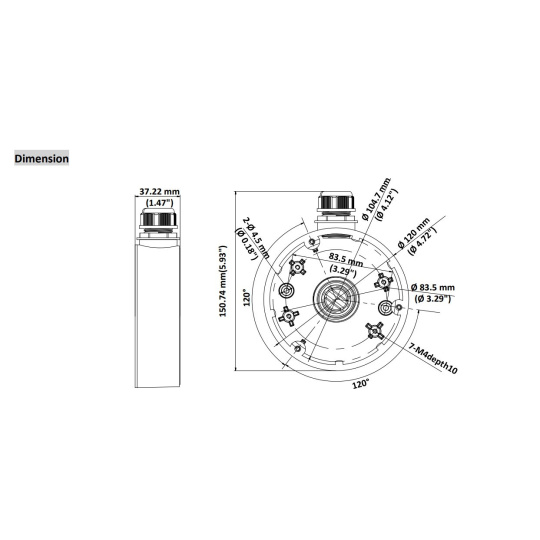 | Rozmery | O 120 mm × 37,2 mm (O 4,72" × 1,46") |