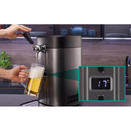 Výčepné zariadenie HISENSE udrží pivo pri optimálnej teplote. Prednastavené je na 5 °C, ale môžete si nastaviť teplotu od 3 do 12 °C - podľa vašich preferencií. O všetko sa postará super tichý termoelektrický chladicí systém. Na LED displeji sa zobrazuje aktuálna teplota, takže ľahko zistíte, kedy je pivo pripravené na čepovanie.