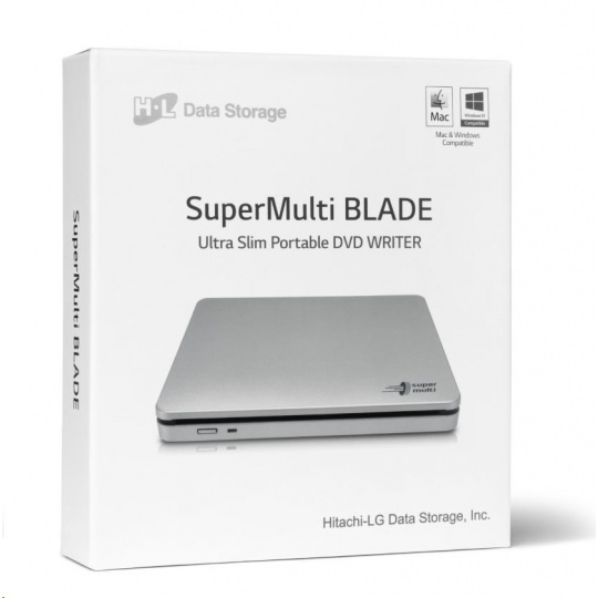 HITACHI LG - Externý DVD-W/CD-RW/DVD±R/±RW/RAM/M-DISC GP70NS50, Blade Ultra Slim, strieborný, krabica+SW