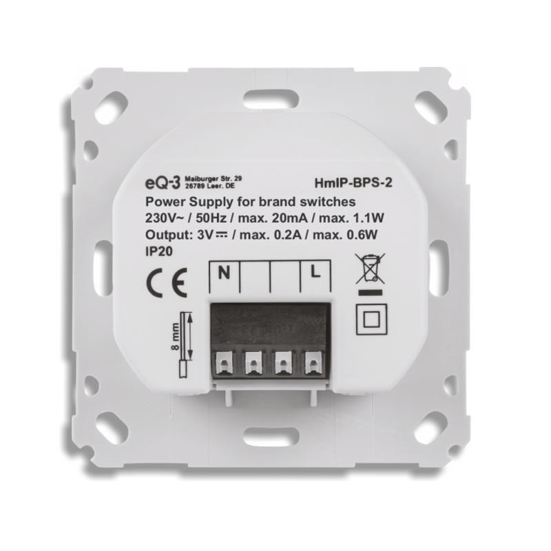 Napájací zdroj batériových komponentov 55 mm (HmIP-BPS-2) je súčasťou systému chytrej domácnosti Homematic IP a slúži ako praktická dokovacia stanica pre napájanie batériových komponentov o veľkosti 55 mm s pripojením do existujúcej elektrickej siete 230 V a umiestnením do štandardného zápustného boxu pod omietku.