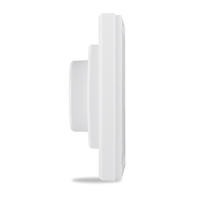 Bezdrôtová komunikácia a batériový režim ponúka možnosť jednoduché inštalácie bez potreby káblovania. To znamená, že nástenný diaľkový ovládač je možné nainštalovať cez štandardnú zápustnú krabicu pod omietku alebo voľne umiestniť kdekoľvek. Upevnenie pomocou montážneho materiálu (hmoždinky, skrutky) alebo fixácie pomocou dodávaných lepiacich pások.