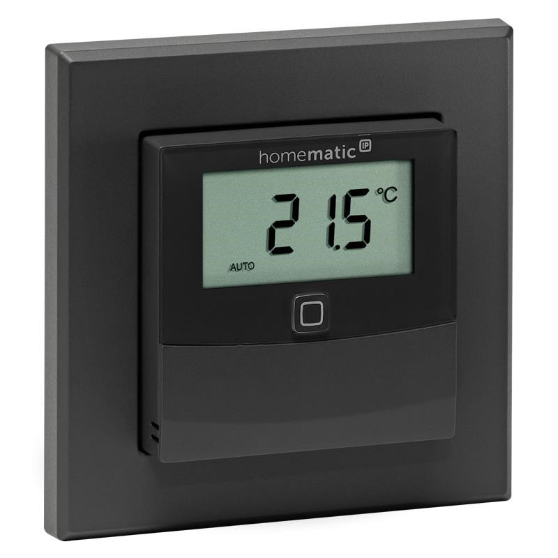 Bezdrôtový nástenný Senzor teploty a vlhkosti v antracitovej farbe (HmIP-STHD-A) s LED displejom o veľkosti 1,74" (4,4 cm) pre zobrazovanie aktuálnych informácií predstavuje inteligentný spôsob pre reguláciu vykurovania a úsporu energie.