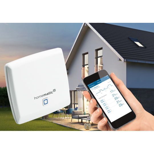 Bezdrôtové prepojenie jednotlivých zariadení Homematic IP s Centrálnou jednotkou HmIP-HAP ponúka pohodlné nastavenie a ovládanie komplexného systému smart home pomocou intuitívnej aplikácie (pre Android a iOS v CZ), určené pre chytré telefóny. Mobilná aplikácia umožňuje okamžitú reakciu na správy a upozornenia zo systému vašej inteligentnej domácnosti a spája všetky zariadenia Homematic IP prostredníctvom bezplatného, neobmedzeného cloudu, ktorý umožňuje nastavenie a riadenie systému odkiaľkoľvek na svete, prenos dôležitých informácií a aktualizáciu softvéru a firmvéru zariadení, odovzdávanie konfiguračných a prevádzkových príkazov z aplikácie Homematic IP smerom k jednotlivým zariadeniam inteligentnej domácnosti.