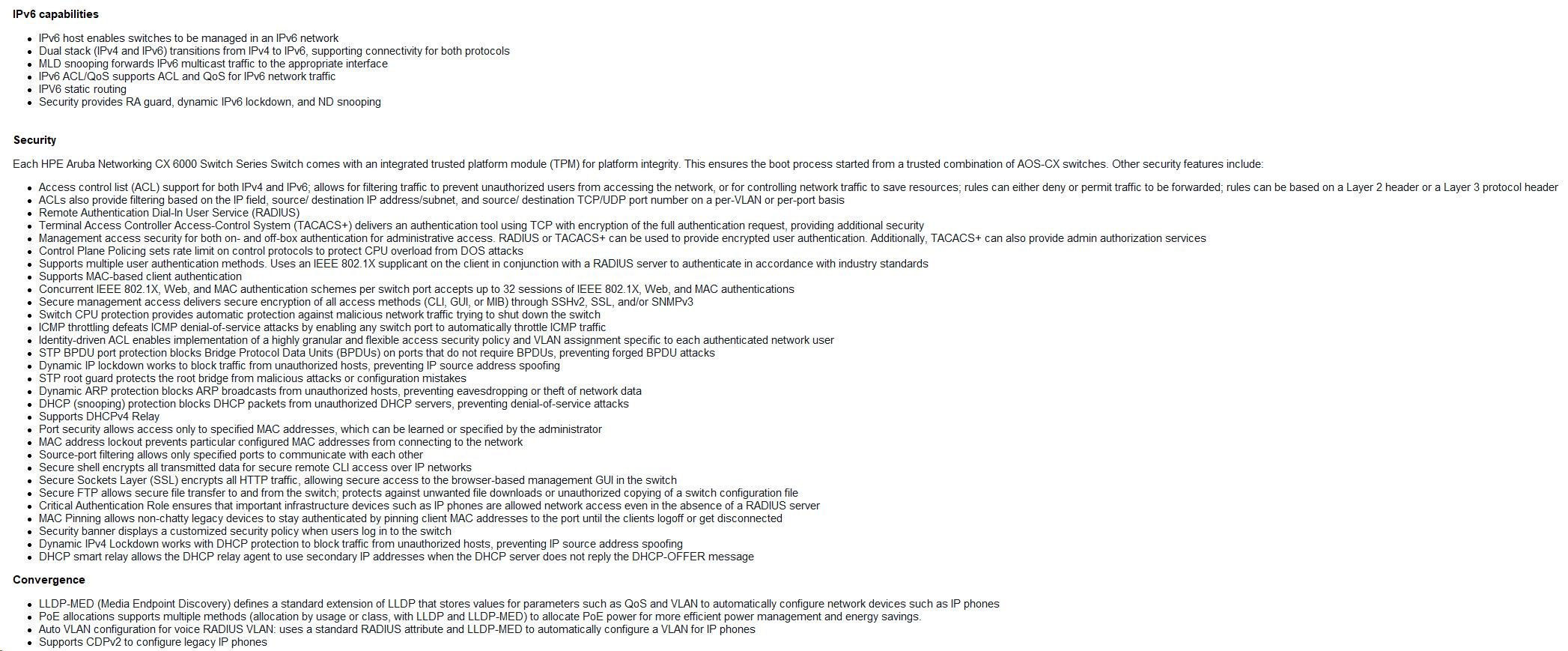 | IPv4/IPv6/MAC ACL Entries (ingress) | 256 / 128 / 256 |