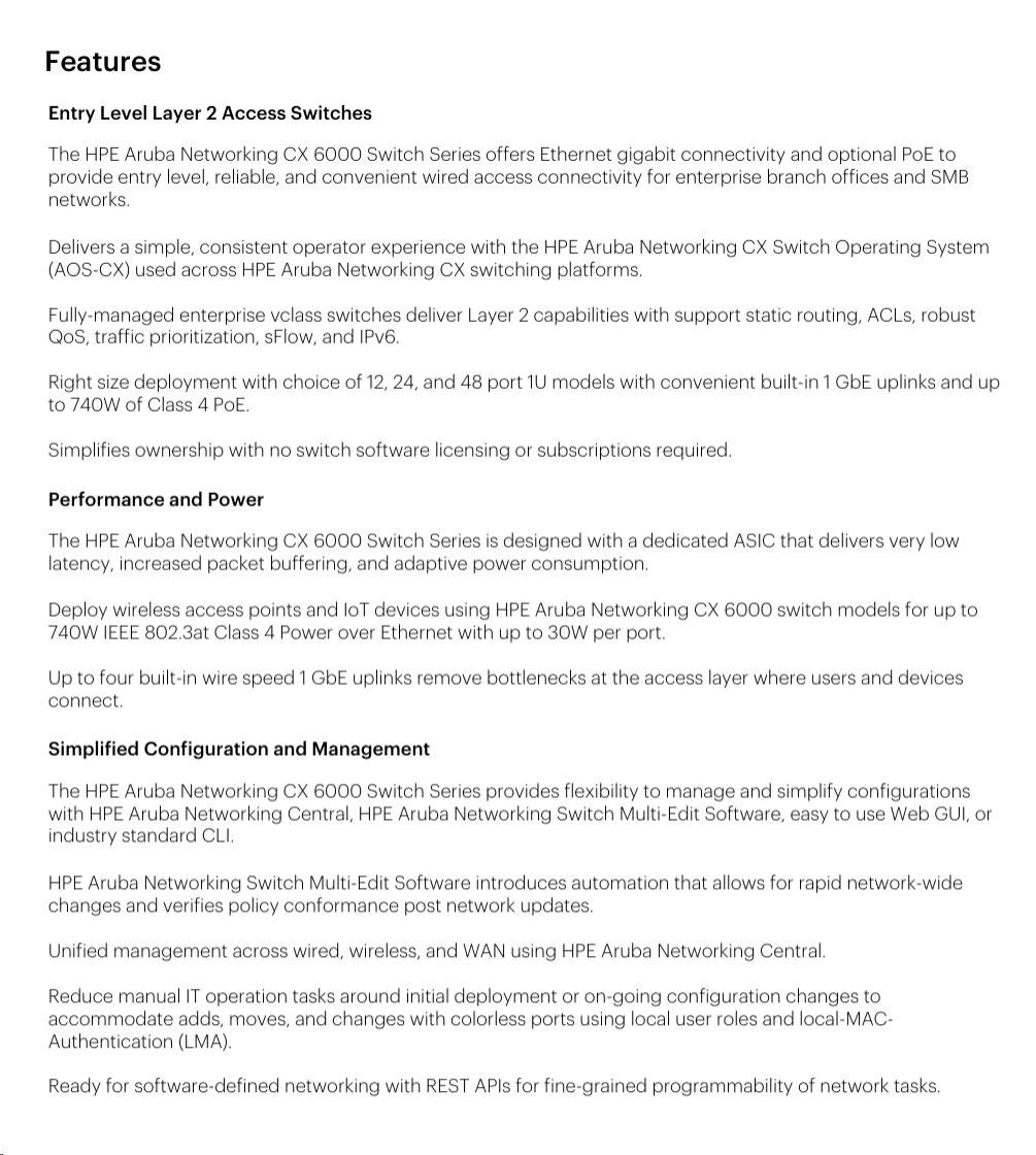 HPE Aruba Networking CX 6000 8p 10M/100M/1G 2p SFP 1G Switch