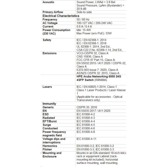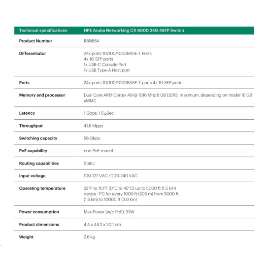 HPE Aruba Networking CX 6000 8p 10M/100M/1G Class4 PoE 2p SFP 1G 67W Switch.