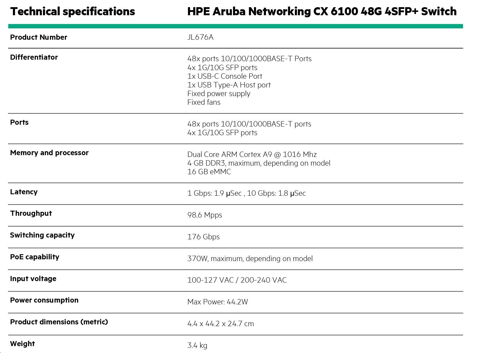 HPE Aruba Networking CX6100 48G 4SFP+ Switch RENEW JL676A