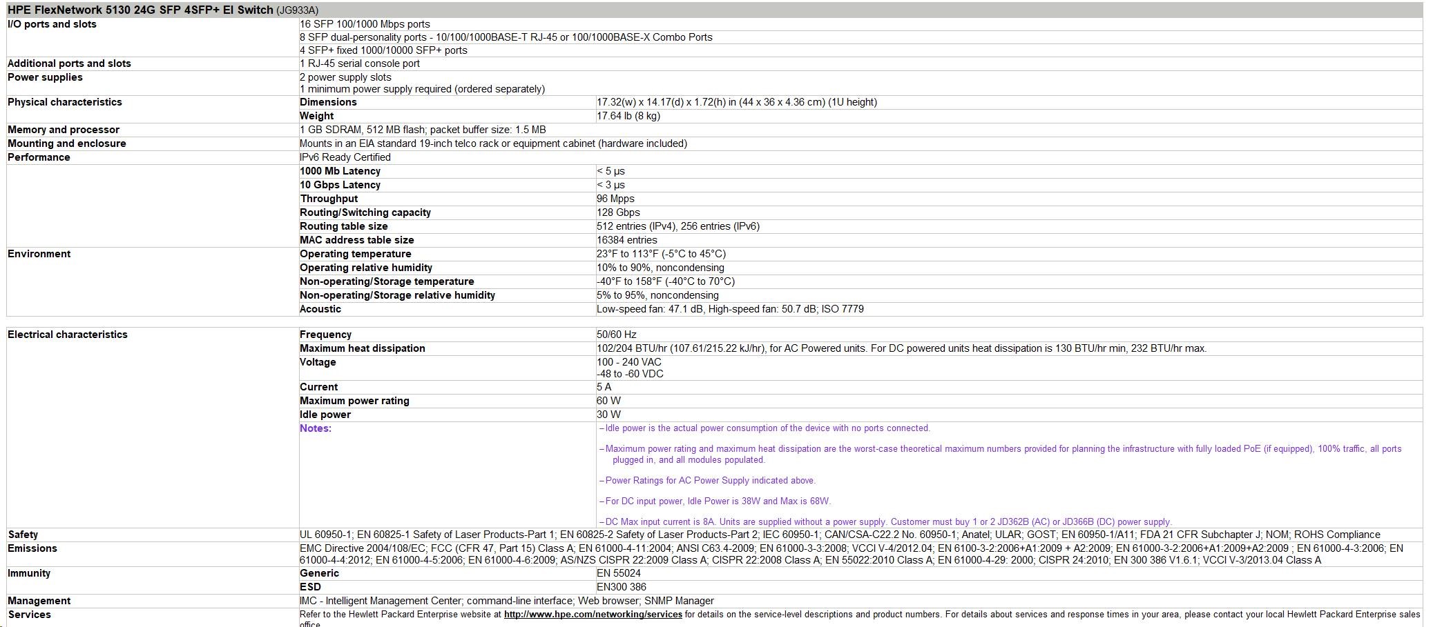 The HPE FlexNetwork 5130 EI Switch Series comprises Gigabit Ethernet switches that support static and RIP Layer 3 routing, diversified services, and IPv6 forwarding, as well as provide four 10-Gigabit Ethernet (10GbE) interfaces.