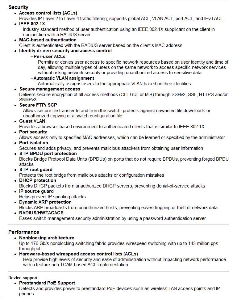 • Powerful QoS feature Supports the following congestion actions: strict priority (SP) queuing, weighted round robin (WRR), and SP+WRR