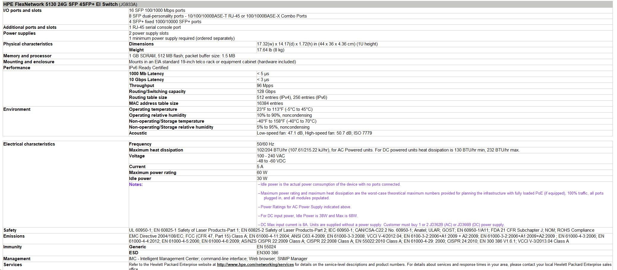 Maximum power rating and maximum heat dissipation are the worst-case theoretical maximum numbers provided for planning the infrastructure with fully loaded PoE (if equipped), 100% traffic, all ports plugged in, and all modules populated.