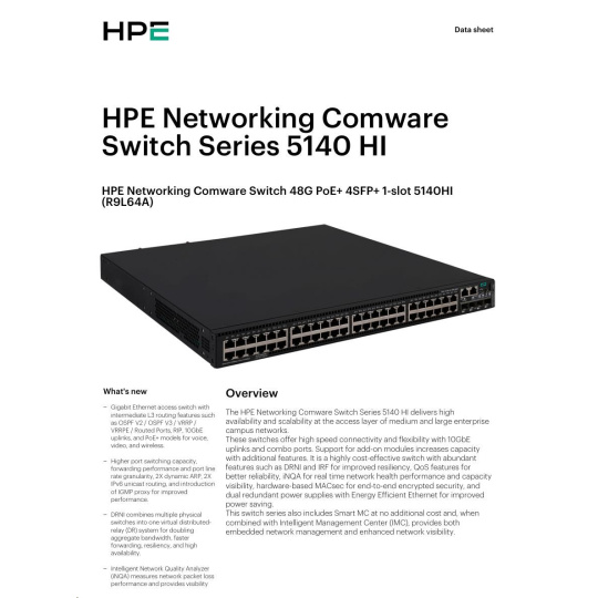 HPE FlexNetwork 5140 48G PoE+ 4SFP+ HI Switch R9L64A RENEW