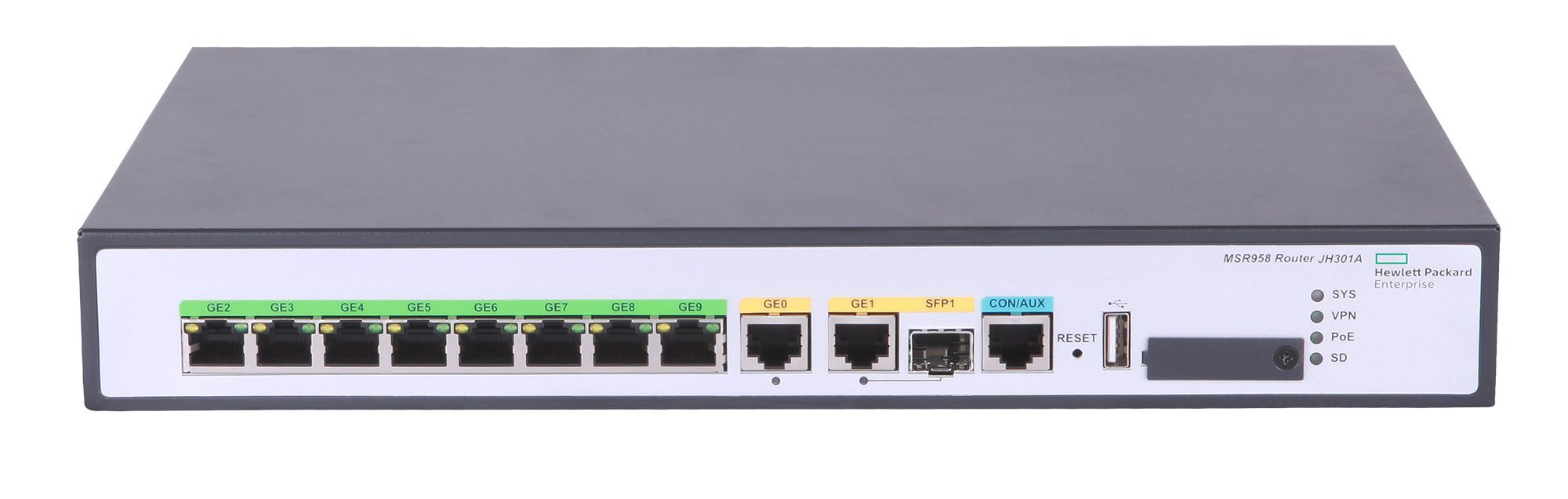 HPE FlexNetwork MSR958 1GbE and Combo 2GbE WAN 8GbE LAN Router.