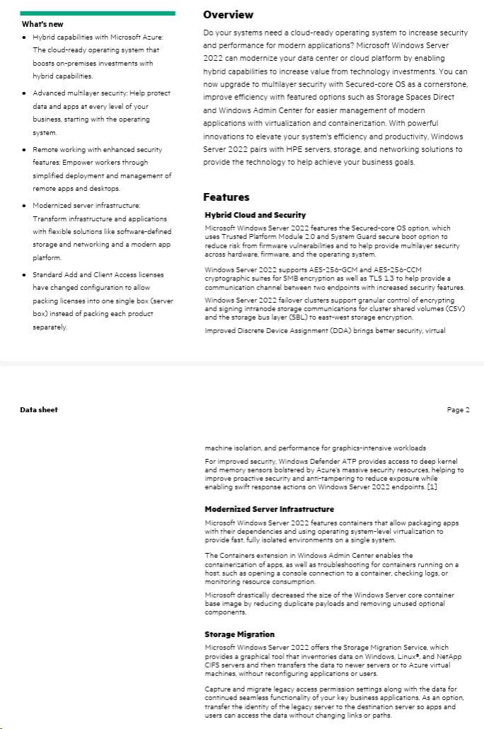 HPE Windows Server 2022 Datacenter Edition ROK 16Core No Reassignment Rights CZ EN PL RU SV