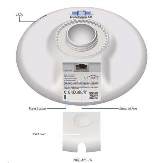 nanoBeam M5 2x16dBi je nová kompaktná jednotka s elegantným dizajnom a vysokým výkonom. Vnútri sa nachádza procesor MIPS Atheros 74KC s frekvenciou 560 MHz, za ktorým nasleduje 64 MB operačnej pamäte DDR2 a 8 MB pamäte Flash. Sieťový port podporuje 10/100 Ethernet a môže napájať jednotku pomocou 24V/0,5A pasívneho PoE (aktívne PoE podľa 802.3af nie je podporovaný). 802.11n a spätnú kompatibilitu s 802.11a. Vďaka technológii AirMAX (protokol TDMA) je možné pripojiť sa k prístupovému bodu s nízkou latenciou a vysokou priepustnosťou bezdrôtového pripojenia. Teoretická maximálna priepustnosť jednotky je 300 Mbit (MCS15, 802.11n, 2x2MIMO, pri šírke kanála 40 MHz). Technické špecifikácie: