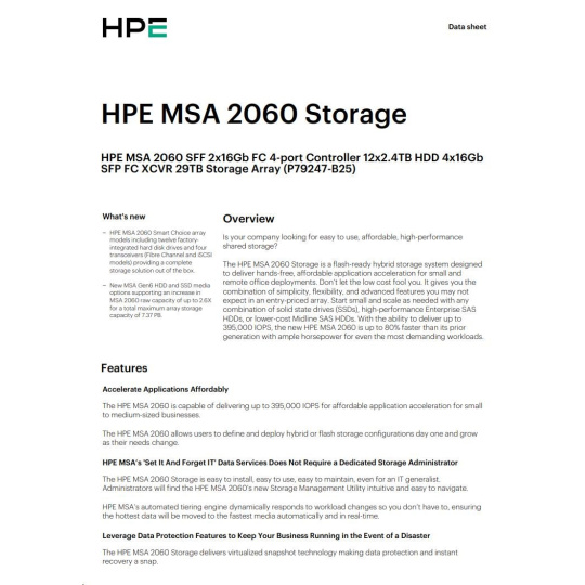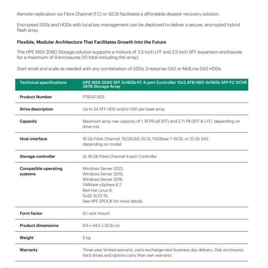 HPE MSA 2060 SFF 2x16Gb FC 4-port Controller 12x2.4TB HDD 4x16Gb SFP FC XCVR 29TB Storage Array Smart Choice