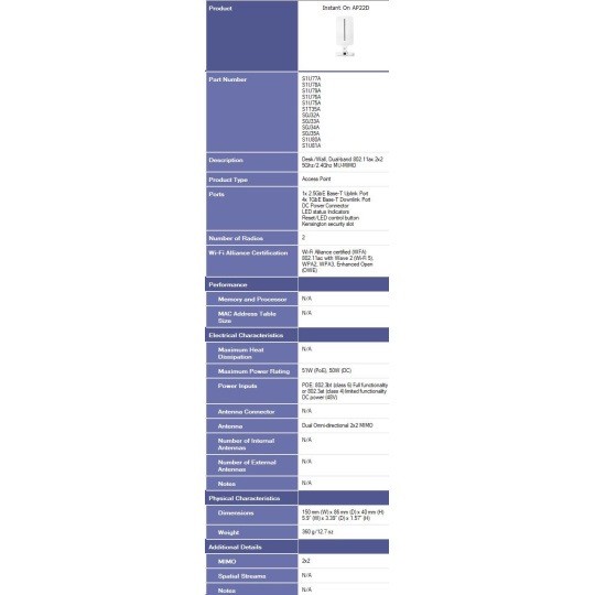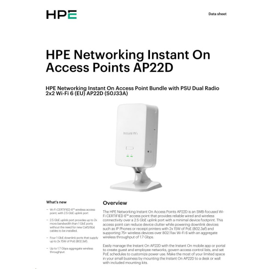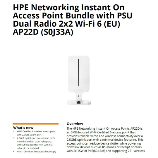 HPE Aruba Instant On Access Point AP22D Bundle with PSU Dual Radio 2x2 Wi-Fi 6 (EU) AP22D (desktop or wallmount)