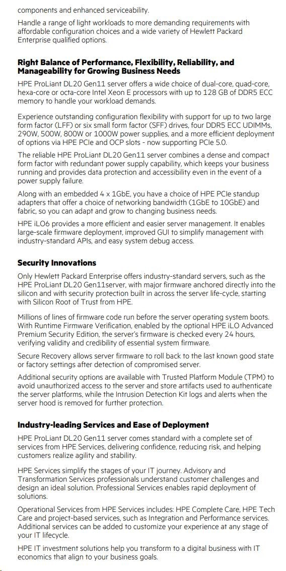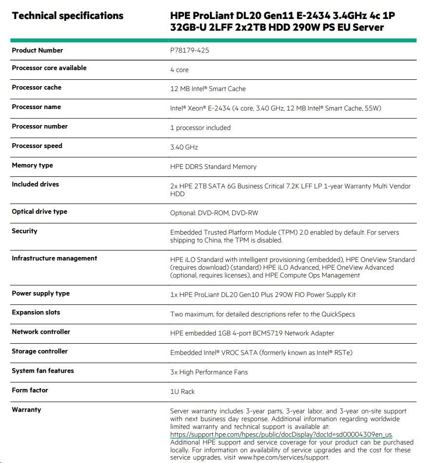 HPE PL DL20g11 6325P (3.5G/4C8T) 1x32G (P64339) 2x2TB/7.2k SATA VROC 2LFF-HP 4p1Gb 290W Smart Choice