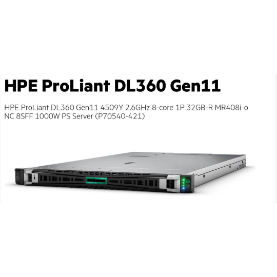 HPE ProLiant DL360 Gen11 4509Y 2.6GHz 8-core 1P 32GB-R MR408i-o NC 8SFF 1000W PS Server