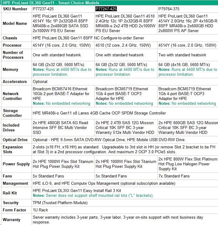 | Chassis | HPE ProLiant DL360 Gen11 8SFF NC Configure-to-order Server |
