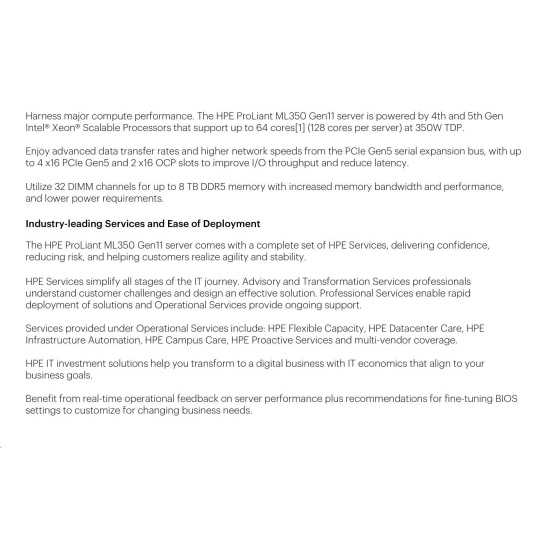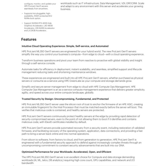 Optical Drive None ship as standard Notes: HPE ProLiant ML350 Gen11 Optical Disk Drive Cable Kit (P56608-B21) is required for optical drive.