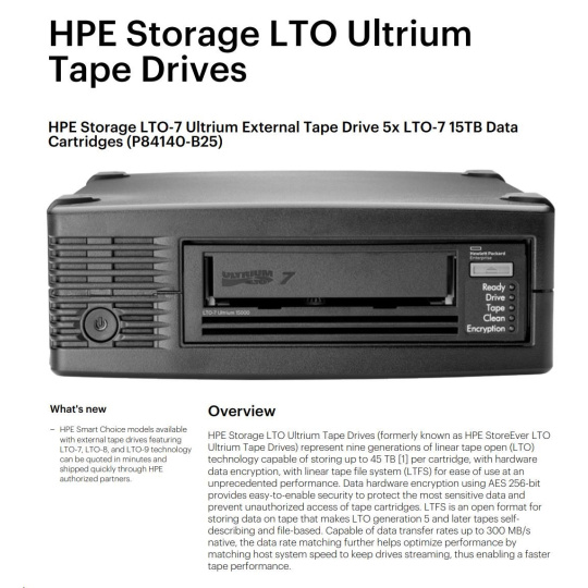HPE Storage LTO-7 Ultrium External Tape Drive 5x LTO-7 15TB Data Cartridges.