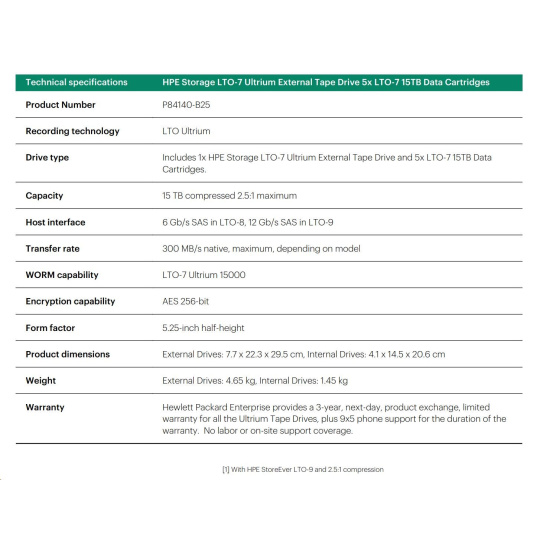 HPE Storage LTO-7 Ultrium External Tape Drive 5x LTO-7 15TB Data Cartridges