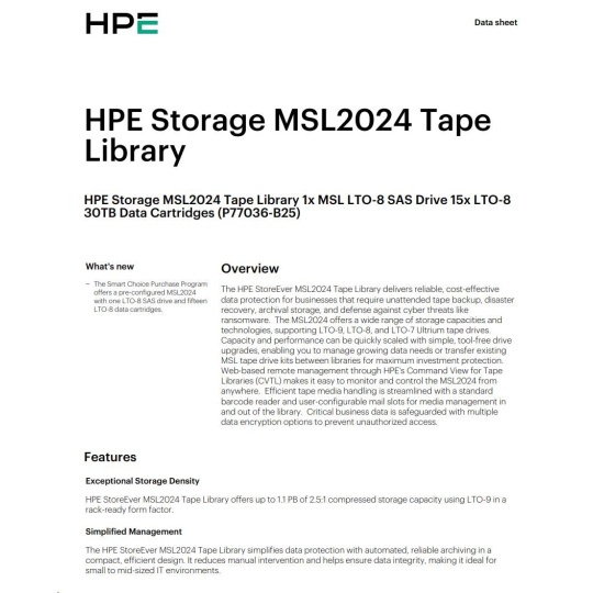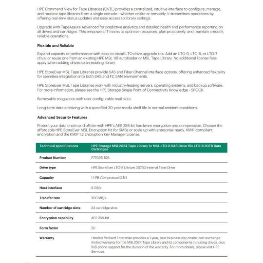 HPE Storage MSL2024 Tape Library 1x MSL LTO-8 SAS Drive 15x LTO-8 30TB Data Cartridges