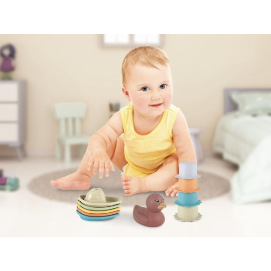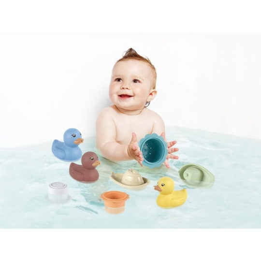 Sada hračiek do vody 3v1, s obľúbenými kačičkami, premení každé kúpanie na zábavnú hru. Farebné kačičky, loďky a kelímky sa postarajú o to, že kúpanie vo vaničke, v miske alebo v bazéniku nebude nuda. Na naberanie vody, prelievanie a polievanie poslúžia stohovacie kelímky s číslami, na vlnách sa pohupujú farebné loďky a roztomilé kačičky.